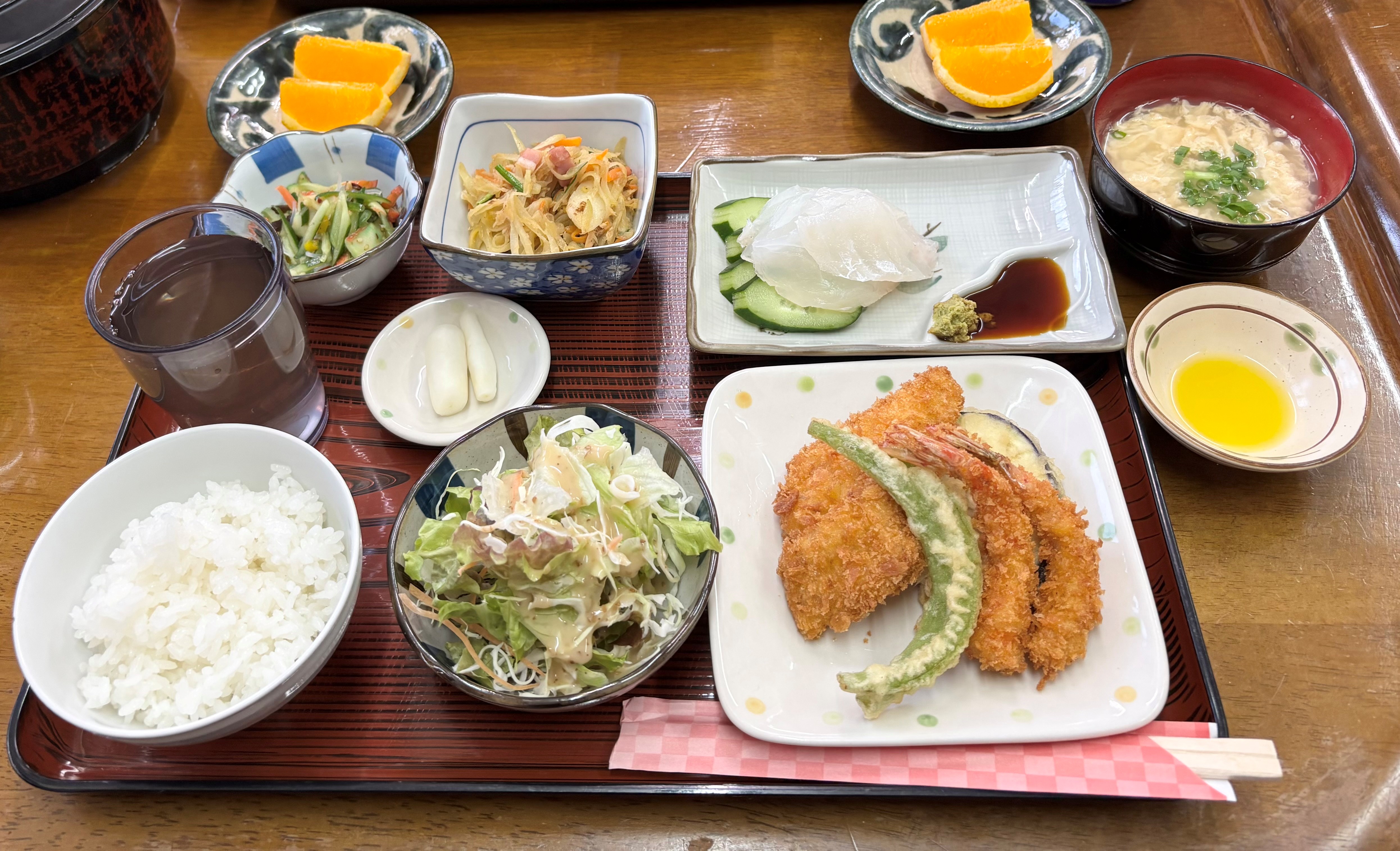 夕食は、ボリュームで手作りの美味しいご飯で大満足です。
